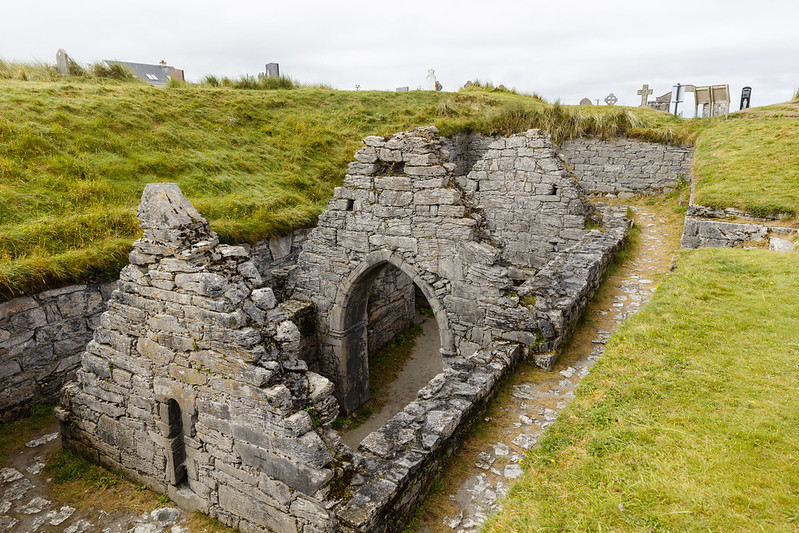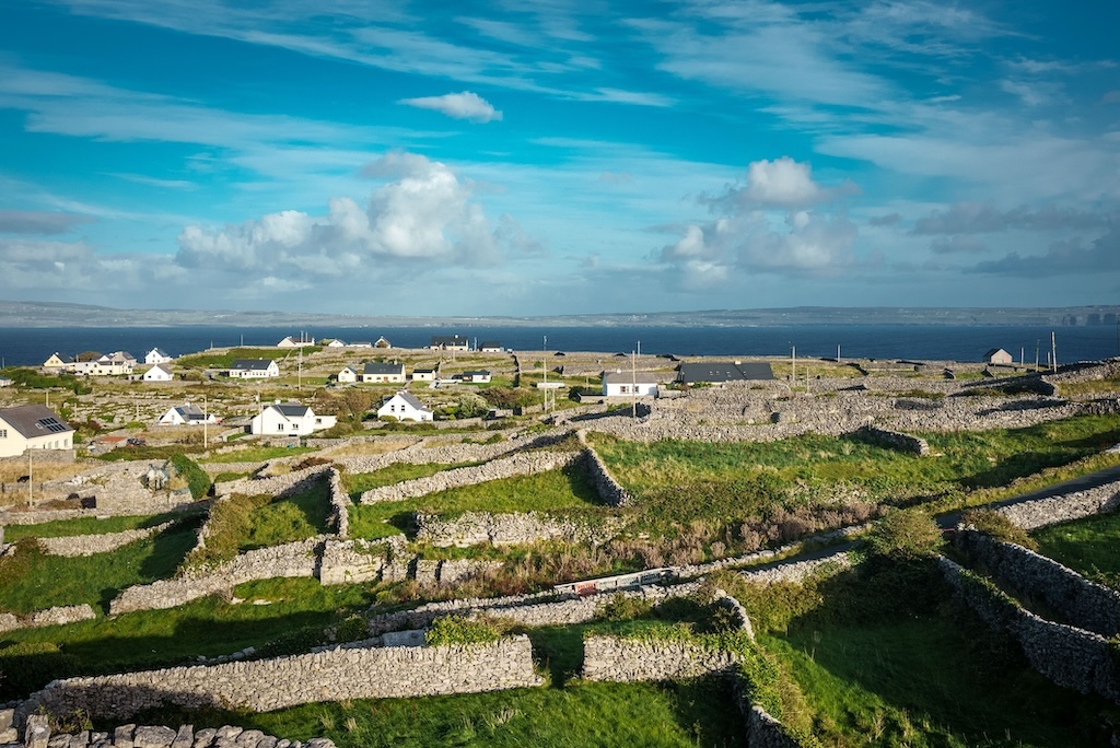 Upon arriving on Inis Oírr, you’ll be greeted by golden sandy beaches, turquoise water, and maybe even the island’s resident dolphin, Dusty! This tranquil collection of fishing villages is also home to a burial mound dating back to 1,500 BC, a medieval church ruin buried half in the sand, and a three-storey tower built within a Stone Age fort.